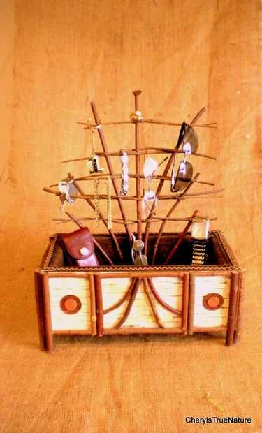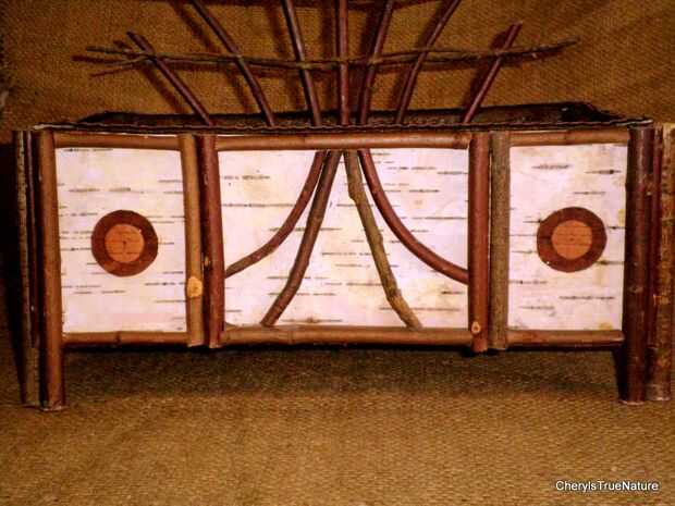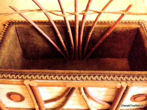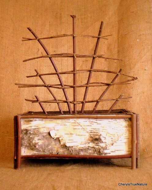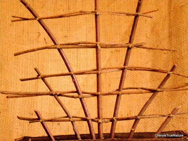 Os adjunto la corteza de abedul y piel artificial con la guarnición en contacto con el cemento y las ramitas decorativas con pegamento para madera y clavos para el refuerzo de brad... La rejilla ha sido asegurada en cada intersección con tendones artificiales.