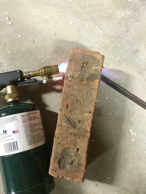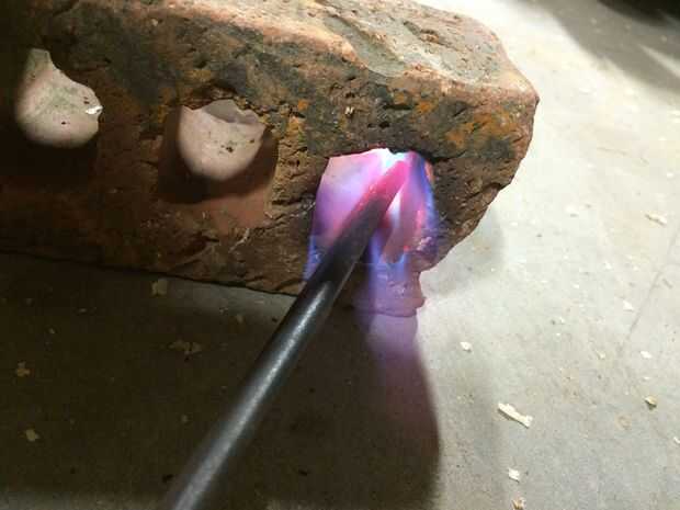 Un soplete y un ladrillo fue suficiente para conseguir fuego rojo: la temperatura ideal. Cualquier número de fuentes de calor para ello. Soplete oxi acetileno, café puede o gas forja, fragua de carbón etc.... ESTOY SEGURO DE QUE FUNCIONARÍA MUY BIEN CON UN SOPLETE DE BUTANO VERSAFLAME.