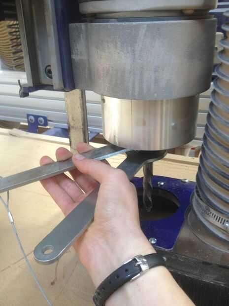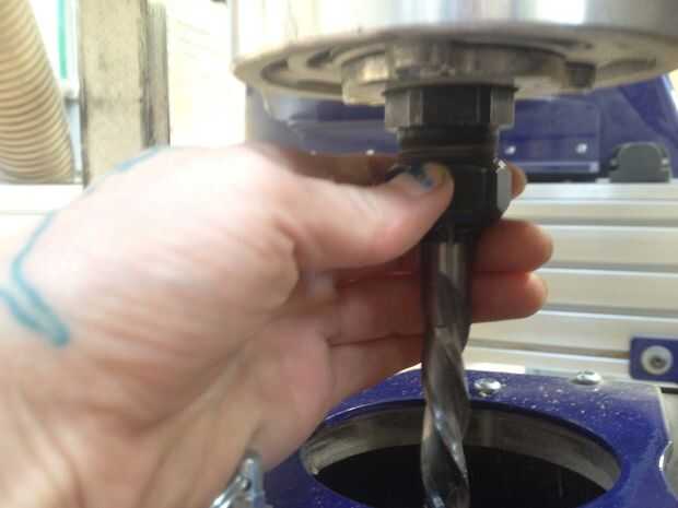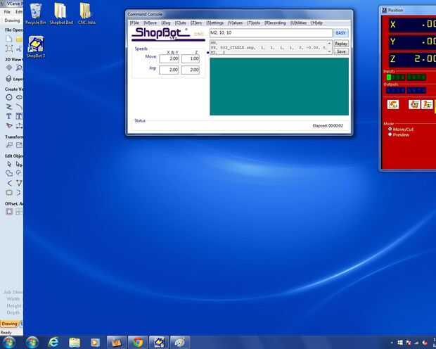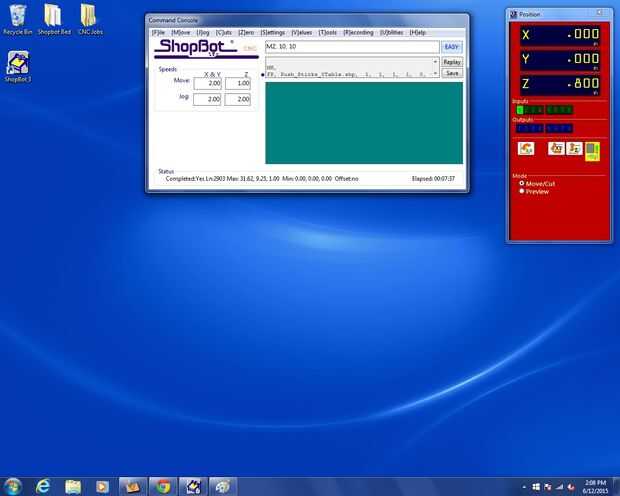 -Abrir ShopBot 3-Asegúrese de que la broca de fresadora está con seguridad por encima de la tabla (puede usar MZ para ajustar altura ej. MZ 3 conjuntos el router a una altura de Z de 3 pulgadas arriba de la mesa)
