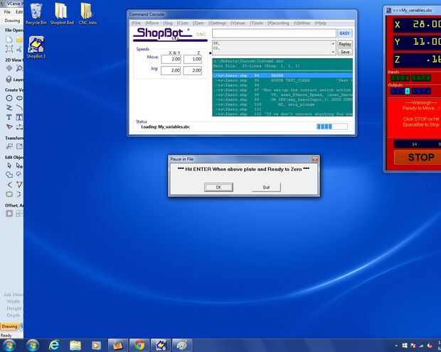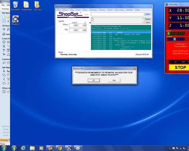 -A pop-up aparecerá en 3 ShopBot que le pide que compruebe que la pinza y la placa en posición. Usted tendrá que aceptar esta para el proceso de puesta a cero comenzar.