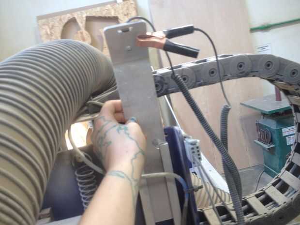 -Conecte la pinza cocodrilo al tornillo de puesta a cero en el ranurador del CNC