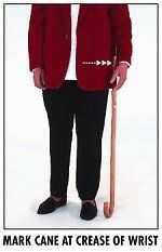 1. se necesitan dos personas para "caber" un bastón. El usuario de caña debe usar sus zapatos para caminar habitual y permanente como naturalmente erguido como sea posible. Los brazos deben colgar a su lado con una curva normal en el codo.