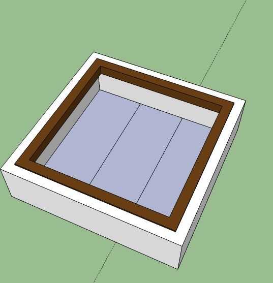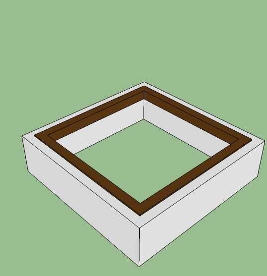Una vez que han cortado los listones, pegamento los dos listones cortos al marco frente a otro, con sus tapas y lados al ras con el marco. Luego, pegue dos listones de tamaño completo en los dos lados restantes y los dos primeros listones, para que tenga cuatro lados de una caja, como en el picute 1.
