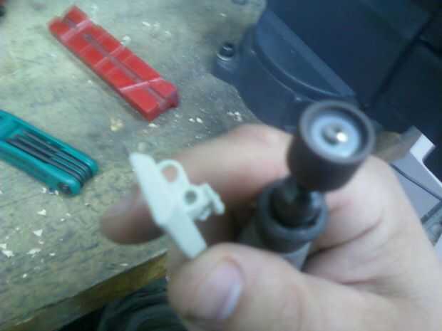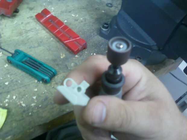 Utilizando la dremel eliminar el saliente sobre la seguridad para terminar con un perfil como se muestra a continuación.