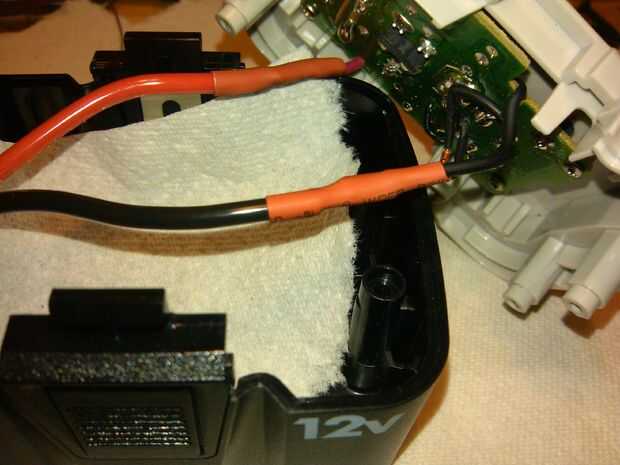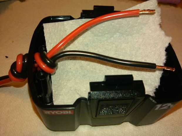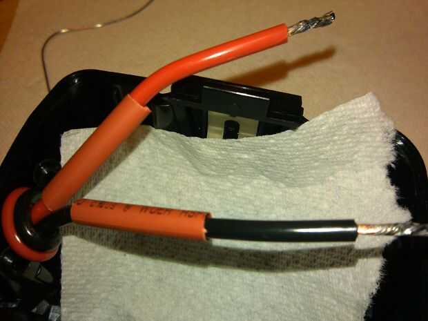 Pelado y había estañado los cables. Podría utilizar tuercas para alambre twist si usted elige, su elección. El positivo (+) cable rojo va el otro cable rojo y el cable negativo (-) negro se conecta al cable negro.
