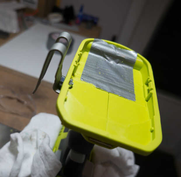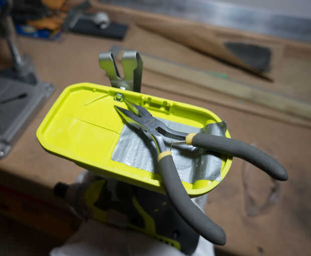 la Ryobi taladro en mi local hackerspace ha construido en un llavero de chuck que no hace su trabajo muy bien. El taladro vibra a veces y luego la llave queda fuera del titular.La segunda foto muestra el fallo de diseño del titular. Hay un labio en u