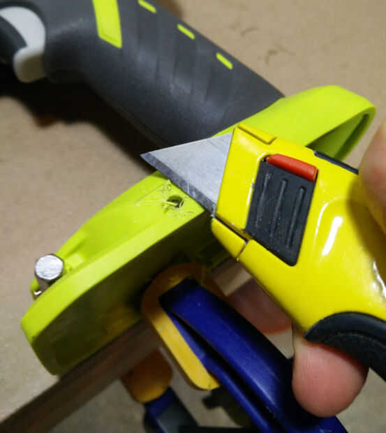 Cuando usted perforar plástico, tiende a dejar virutas y rebabas de detrás. Cuidadosamente limpiar éstos con su cuchillo.