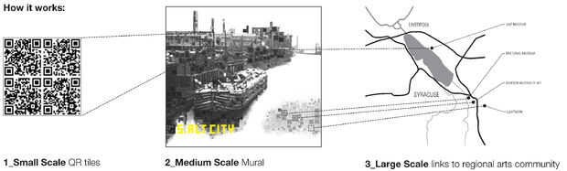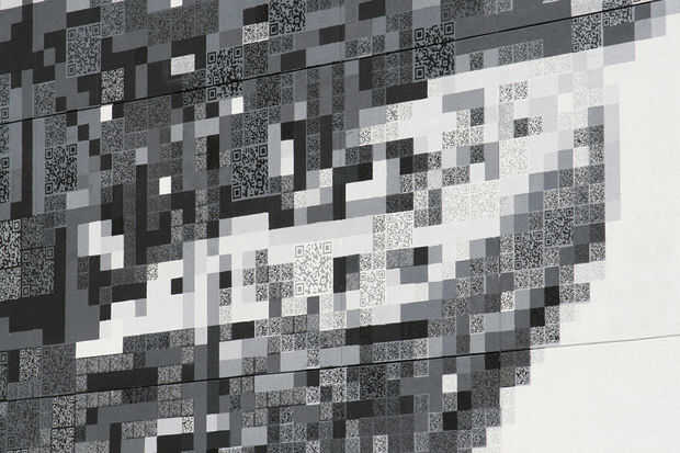 instalación de wall Street para crear murales interactivos que puede ser edificada y revueltos con el tiempo.Componentes de la mezcla de GraffitiRed: La rejilla de cuadrados se componen de igualmente en piezas de madera con imanes conectados por un l