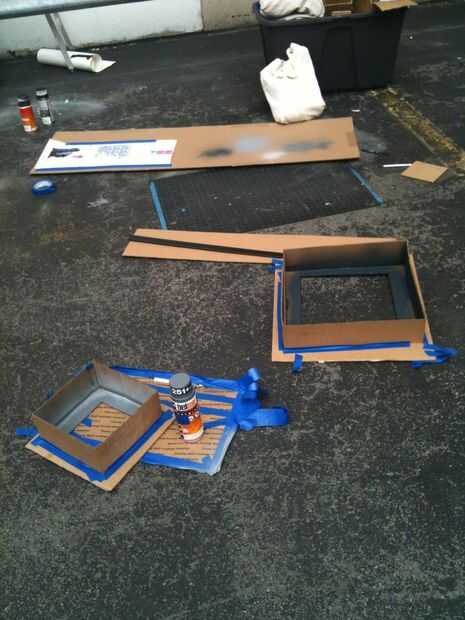 En el sitio, hemos continuado probar y perfeccionar nuestro método de desarrollo de un sitio en especial aerosol guardthat mantuvo el spraypaint de ir fuera de la zona diseñado. En la imagen a la derecha, puedes ver varios spray pruebas antes y después de la plantilla de vinilo había sido quitada.