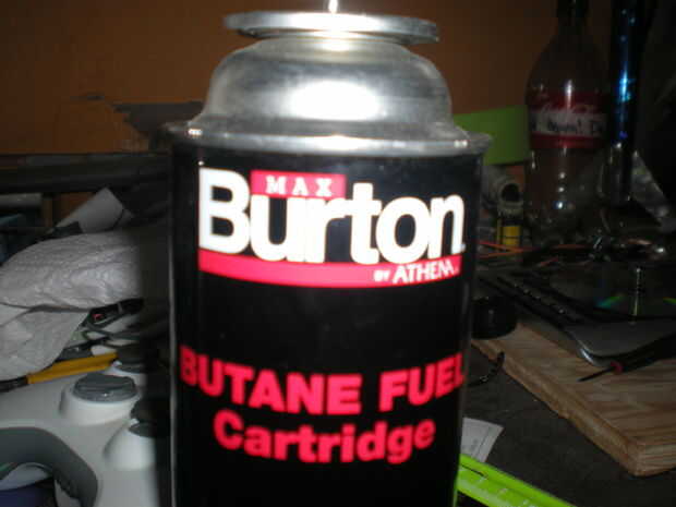 1. butano, Compro en wall-mart o en algún lado como que para como $2,00. Supongo que otras cosas inflamables funcionaría... pero yo sólo he probado butano y blanca gas... pero entonces el poder cayó... y... bien... Guau... y ahora tengo menos un par de jeans... so..eah