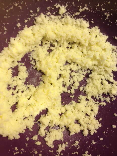 Mezclar mantequilla y azúcar utilizando una batidora de mano hasta que esté ligero y esponjoso.
