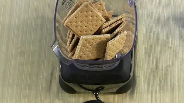Antes de empezar, vas a necesitar hacer tus galletas galletas machacadas. Esto es fácil de hacer en un procesador de alimentos - mezclar sólo hasta que en polvo.