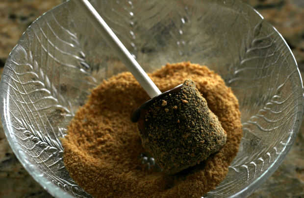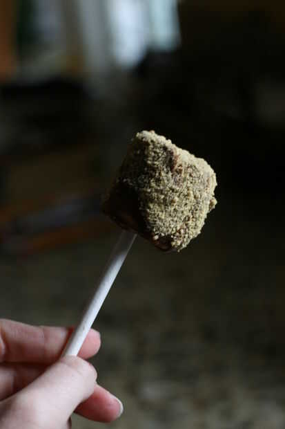 Desmoronarse una galleta o migas de uso previamente envasado para crear la capa externa de su pop de s ' More. Eso es todo! Disfrute!!!!