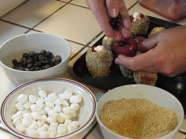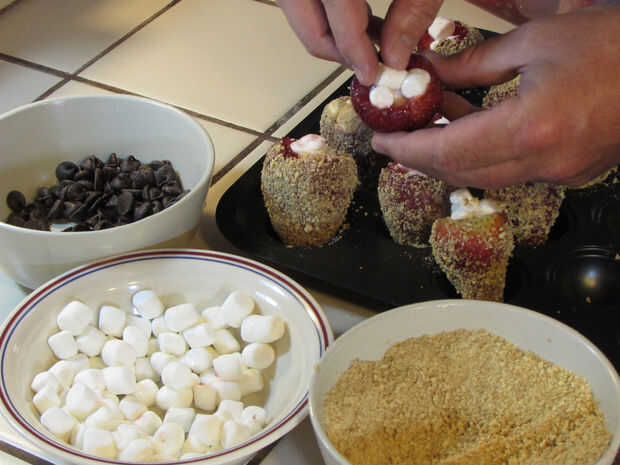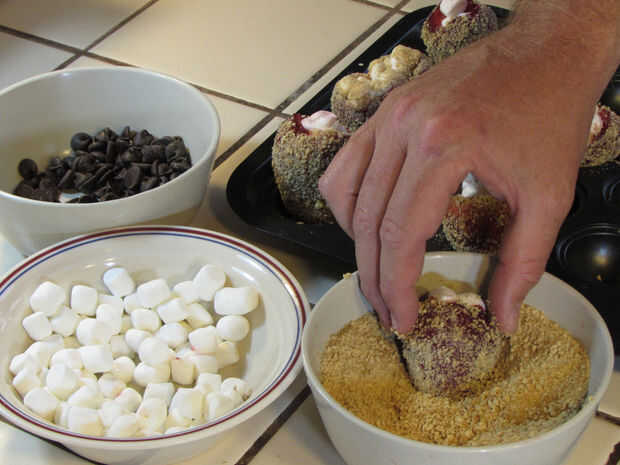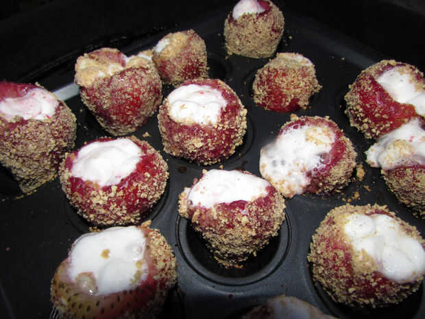 2. a continuación rellenar la mitad superior con malvaviscos.