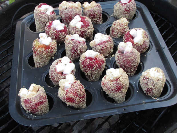 4. Coloque sus bayas los titulares y el calor sobre la parrilla hasta que los malvaviscos se han arruinado completamente.
