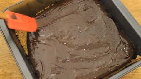 Verter la mezcla sobre la corteza refrescada y separado en una capa uniforme.