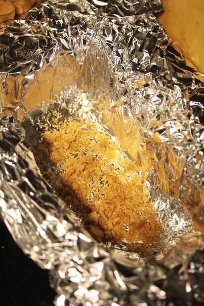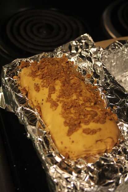 -Derretir la mantequilla y añadir algunas migajas de galletas graham, canela y azúcar al gusto para crear un relleno desmenuzable para poner sobre el pan.