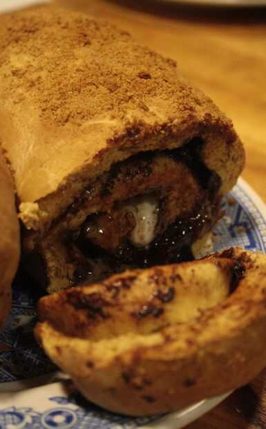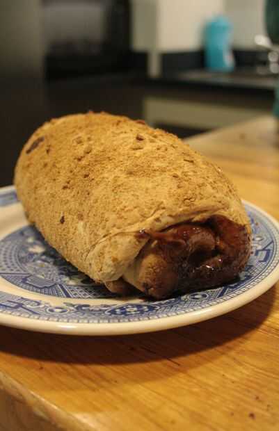 -Deje que el pan se enfríe por lo menos diez minutos porque el interior es realmente caliente y derrama hacia fuera mientras que usted está cortando una rodaja (a menos que como el, entonces ve por ella).
