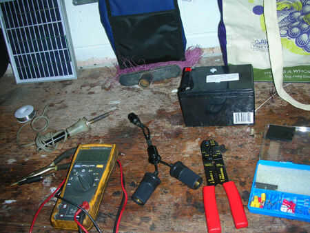 Proyecto: S.P.R.E.E. (Solar Fotovoltaica renovables electrón encapsulador), es un experimento en energías alternativas y electricidad generada solar. El impulso para la construcción fue el deseo de tener mi teléfono celular y otros pequeños productos electrónicos ejecutan totalmente de libre * energía renovable solar.