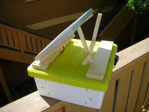 El objetivo era pasar la menor cantidad de dinero posible diseñar, construir y mantener un cargador de batería solar portátil, resistente a la intemperie, en pequeña escala para volver a cargar cualquier pequeña electrónica. Desde que vivo en el sur de California, con un montón de sol, el plan es dejarlo en mi balcón de carga durante el día, entonces cargar mi teléfono celular por la noche. Nota: No coloque sobre un carril de balcón como yo lo hice, era solo para la foto.