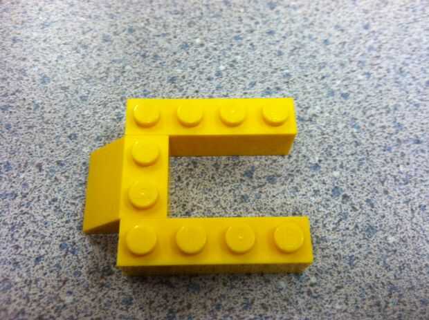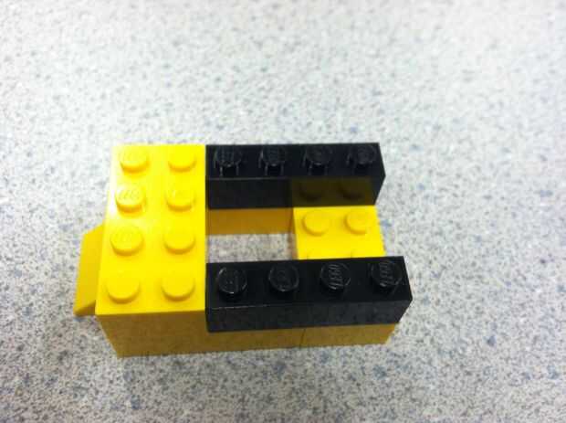 3. en el extremo opuesto de los bloques de 4 x 1, debe colocarse un bloque de 4 x 2 amarillo junto al final.