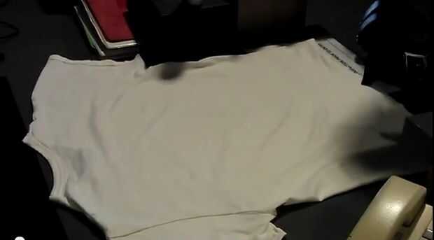 Paso 1: Doblar la camisa por la mitad, asegúrese de que los gráficos en la camiseta son visibles.Paso 2: (Doblar)Paso 3: En la parte donde no se muestra el diseño de la rueda para arriba. No liar la parte gráfica ayuda a identificar la camisa de una