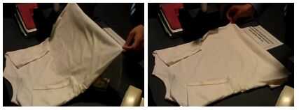 Paso 1: Doblar la camisa por la mitad, asegúrese de que los gráficos en la camiseta son visibles.Paso 2: (Doblar)Paso 3: En la parte donde no se muestra el diseño de la rueda para arriba. No liar la parte gráfica ayuda a identificar la camisa de una
