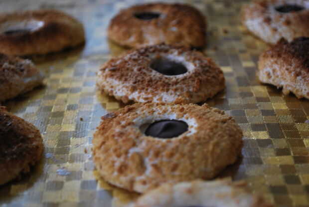Paso 2 Coloque el papel encerado con mantequilla en las galletas.