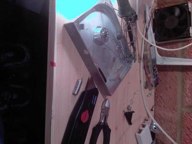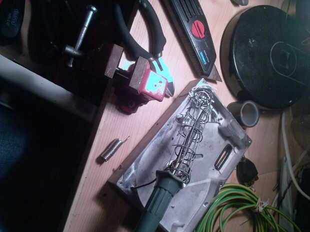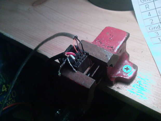 Tengo un vicio muy pequeño que uso para sostener artículos realmente podía hacer con la otra mano aunque él él. También me parece que una buena fuente de luz puede ser inestimable. en la segunda foto el brillo ha hecho el escritorio se ven azules. también se puede ver en el escritorio un viejo filtro ADSL que no había pensado en utilizar a la hora vendré más tarde.