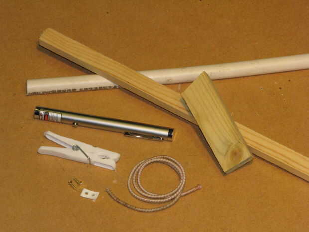 Un tramo corto de tubo de plástico para sostener el puntero láser. Mina dulce diapositivas en un pedazo de tubo de 5/8"(15mm) de la tienda de bricolaje.
