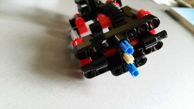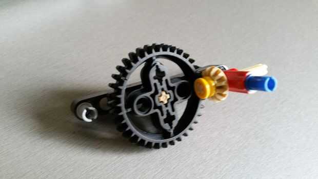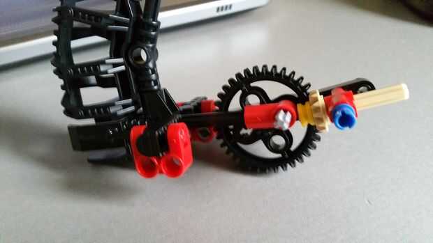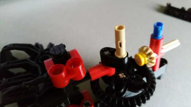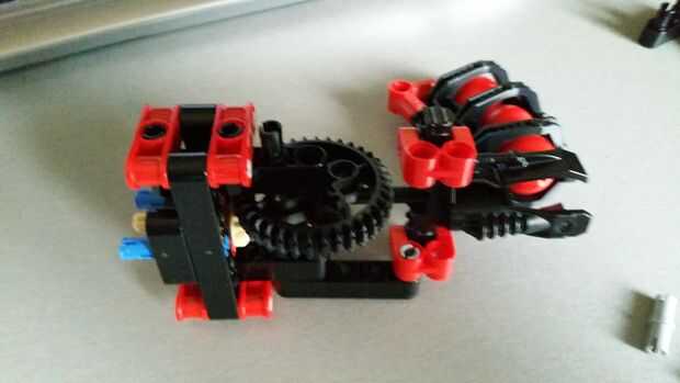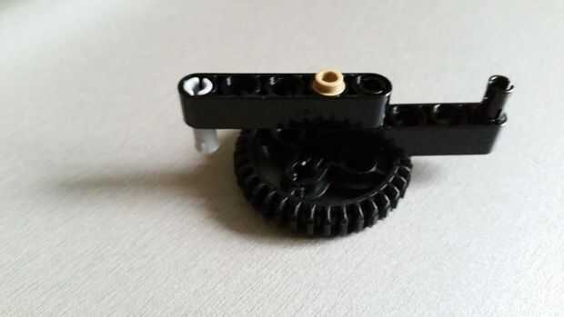 Hay 1 Además, que es la parte en forma de L, que añadí al lado del gran engranaje, esto es para sujetar al ladrillo inteligente. Había atornillado para arriba con la adición que, tan sólo tienes que seguir la colocación para en las 2 últimas fotos.