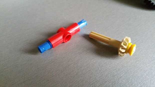 4 - Coloque el engranaje de 36 dientes grandes con una varilla de tachonado marrón