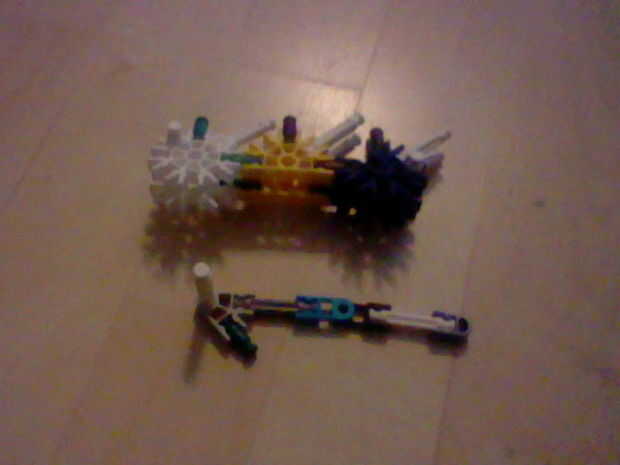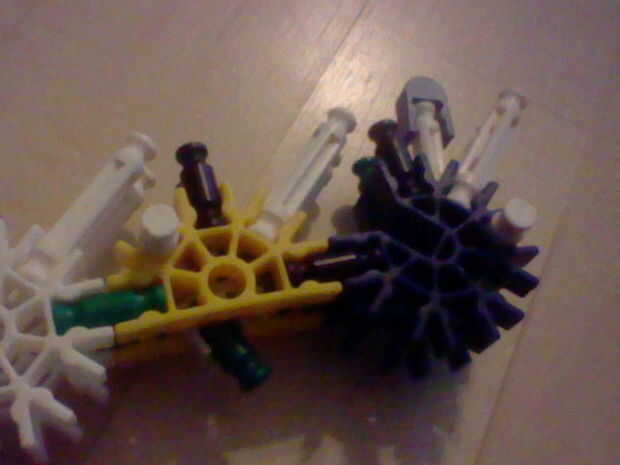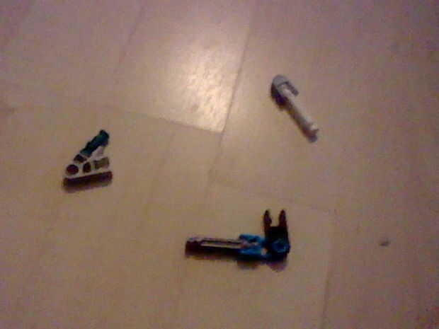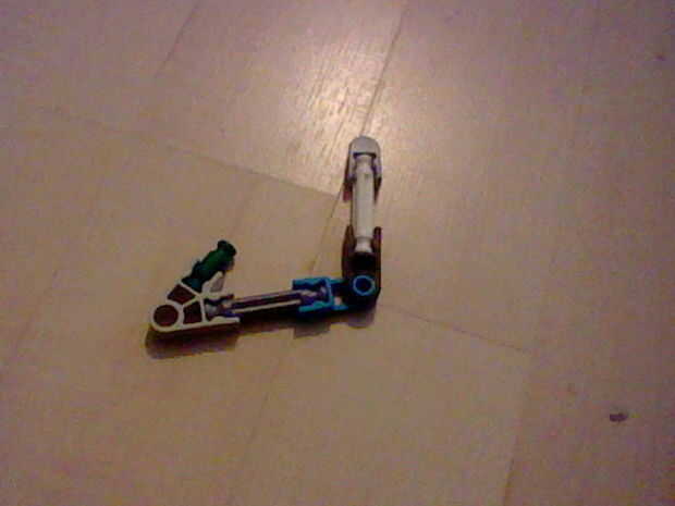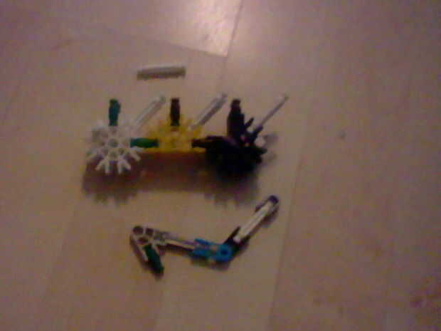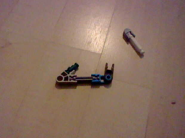 Foto 8:... Como tal. El conector entre que los dos conectores amarillo y el azul y el negro de la bisagra entre los conectores azul oscuros, la varilla del blanco con el conector corto azul que sale de la parte superior de los conectores azul oscuros