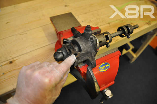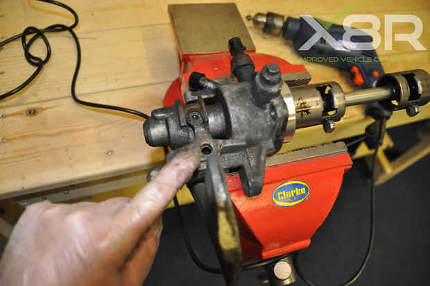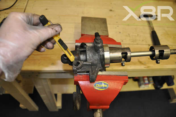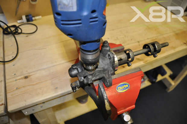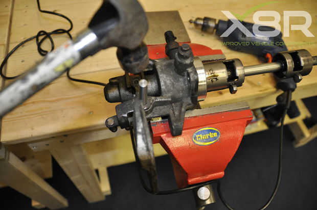 Perfore el pivote con broca incluida, hacerlo a baja velocidad hasta que se quite suficiente metal para permitir el pivote a eliminarse.