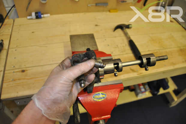 Empujar el pivote utilizando nuestra herramienta incluida, este martillo hacia abajo suavemente para quitar el pasador-pivote.