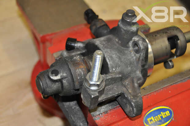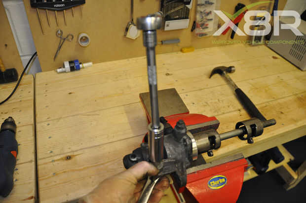 Asegúrese de que bush esté muerto central al agujero y dibuja lentamente poco a poco apretando el tornillo del tirador.