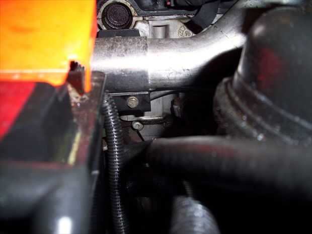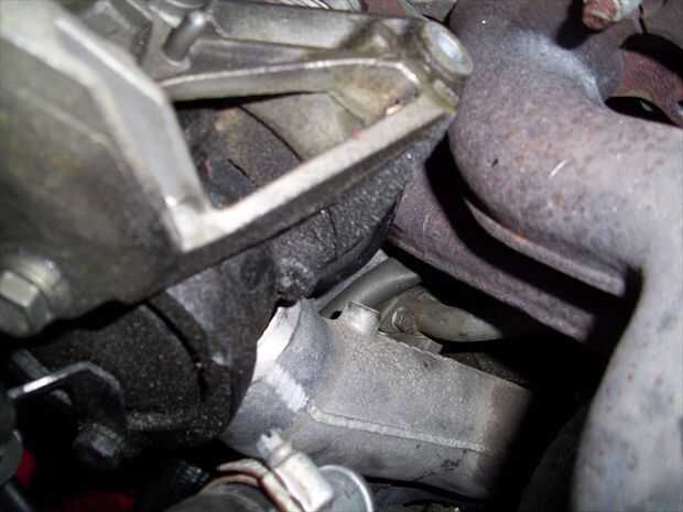 En el lado del conductor del motor hay otro tornillo que protege tanto de las tuberías de refrigerante con dos lengüetas de metal.