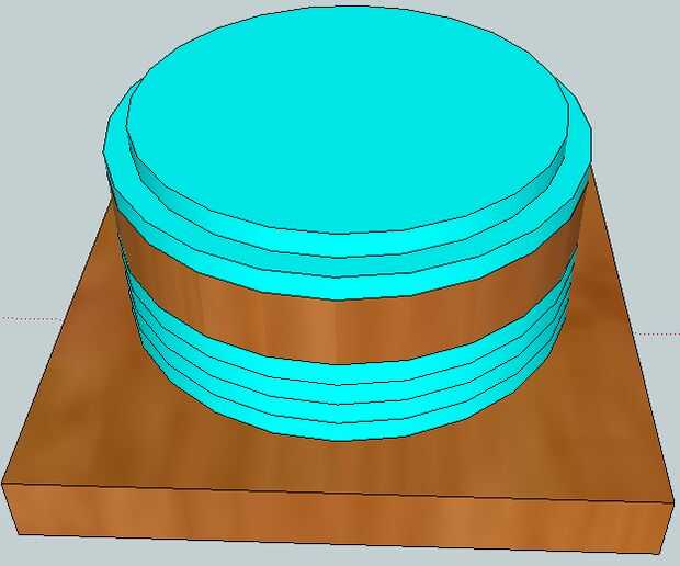 Corta varios círculos más y colocarlos encima de un círculo, opuesta al lado de las piezas de antes. Poner todo esto en el centro de una plaza y atorníllelo en su lugar.