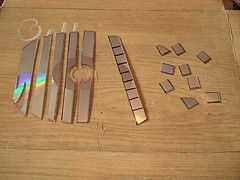 como bolas de discoteca, pensé que haría un sombrero fresco. OK lo que usted necesita, barato visera (no importa de qué color) y espejo Flexible Cutable, Sharp sisors, pistola de pegamento caliente (bajo/multitemp) con abundante pegamento stix. Buen