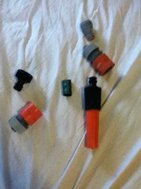 adaptadores de manguera de 2, 1hose boquilla, 2 adaptadores doble, cinta adhesiva, una cosa del tubo de burbuja y unos 5 centímetros de manguera.