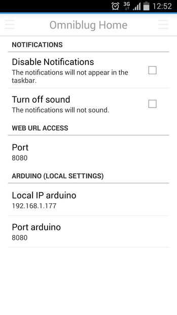 El primer paso que debemos hacer es abrir la aplicación para configurar la IP y el puerto de arduino en los ajustes de la aplicación (debe coincidir con los que tenemos en el programa scket arduino, vea usted la imagen).