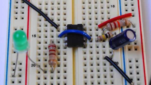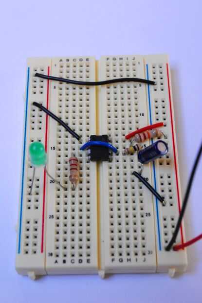 Una vez que se juntan, probarlo. El LED debe parpadear y ligeramente rápido. otra vez si algo no parece correcto Compruebe las fotos y si se calienta el IC Quite energía inmediatamente o a freír su chip.