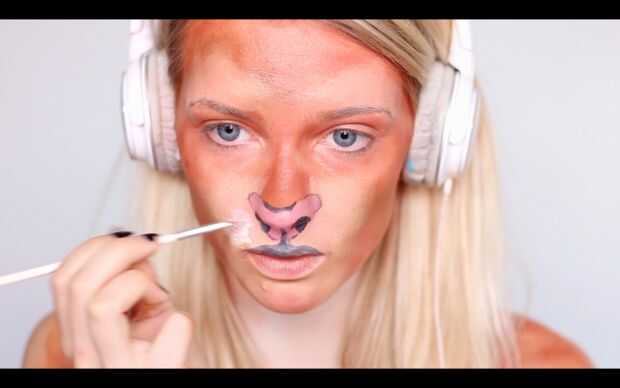 Tutorial de maquillaje de Halloween de BansheePaso 1: Vamos a empezar!1. primero pegue mis cejas, por lo que yo puedo desaparecerlos más adelante.2. luego utilizar pintura de la cara blanca.3. luego aplicarlo a mi cara y cuello y también se desvanece