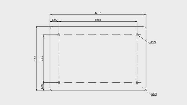 Siguiente paso es colocar la caja simple, que se hace de un par de placas de plexiglás, ahumado 3mm o 4mm claro, con las dimensiones indicadas en la foto 4. El archivo DXF, utilizado para corte por láser, está disponible para Descargar aquí .