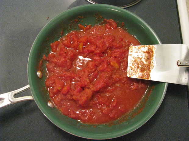 Es hora de comenzar. Sólo añadir los tomates en la sartén a fuego medio y deje calentar un poco.