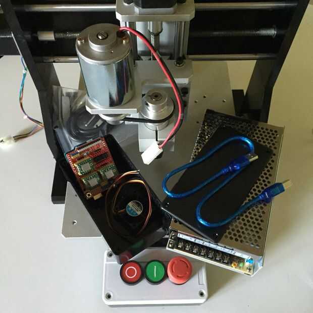 Deliberadamente ordené la estructura, motores y el montaje del huso, ya que yo planeaba convertir esto a una máquina de Arduino/GRBL conducido de todos modos. He guardado un par de cientos de dólares por hacerlo. El combo GRBL/Arduino es perfecto ya que los chips de controlador de A9855 pusieron hacia fuera un máximo de 2A que es perfecto puesto que son potencia de estos motores Nema 17 poco a 1,5 aproximadamente.