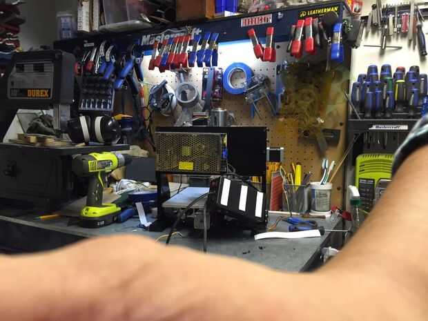 Después de todo el cableado, enrutamiento y gestión de los cables se hizo, que era tiempo de montar las cosas en la parte posterior y lateral de la máquina. Decidí montar la botonera y la caja de control a la izquierda de la máquina. La razón principal de ser el motor de pasos del eje sobresale de la estructura. Colocando el mando portátil debajo de él, no tomo hasta cualquier pie más impresión que ya tiene.