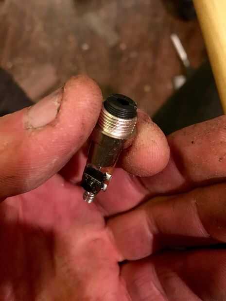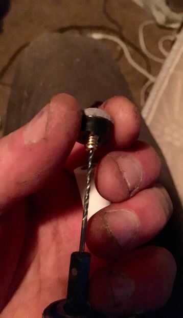Taladro agujero 1/4" de ancho y 2" en punta de referencia. En el otro extremo del eje del taladro 1/2" por 1". Taladro 1/8" a través de la virola. Taladro 1/8" a través de la ensambladora de cue. Ejecutar 2 hilos a través del eje y conectarse a láser en la punta. Inserte el láser en la punta y cubierta con virola.