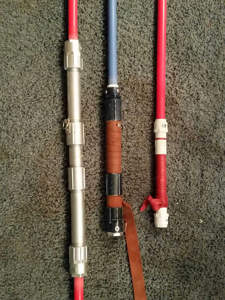 Episodio 4, cuando tenía 9. Mis hijos y destruyó todos los que compramos en la tienda de juguetes y las en línea son sólo a caro así que decidí nos hacen algunos de la pipa del PVC. Estos tres sables todos los ponen juntos utilizando roscado pvc piezas o tornillos Self-taping, no pegamento. Los tres juntos cuestan menos de $50 para hacer. Voy a utilizar el sable rojo y blanco para este DIY pero los métodos son los mismos para cualquier saber. También agregaré las instrucciones para un sable de hoja doble pero sin imágenes.
