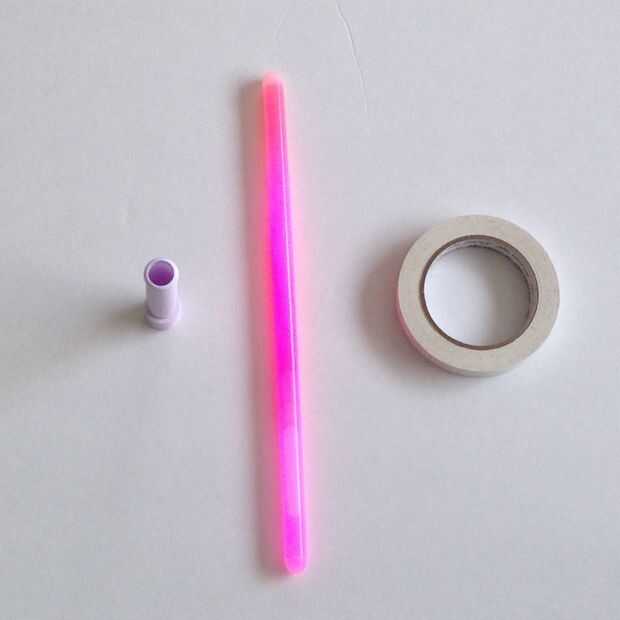 Abra los paquetes. Usaremos el Stick entero, pero sólo será necesario la empuñadura de la varita de Glowstick. Deseche los palillos seis pequeños 8" resplandor de la varilla de Glowstick (o si eres yo, darle a su hijo para mantenerlo ocupado mientras terminas el sable de luz)